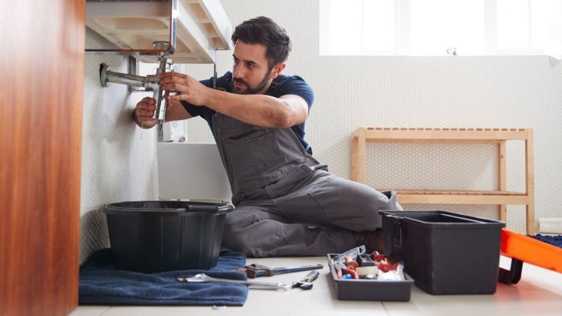 Es un plomero, como se dice en España, México y otros países; una persona cuyo oficio es reparar cañerías o artefactos sanitarios.