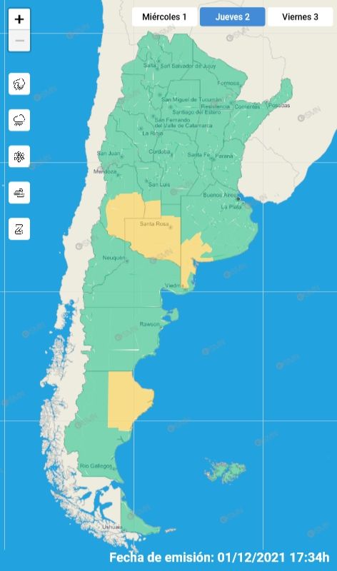 El sistema de alerta nacional anticipa que se desarrollarán tormentas con capacidad de daño y riesgo de interrupción momentánea de actividades cotidianas en el sur provincial.
