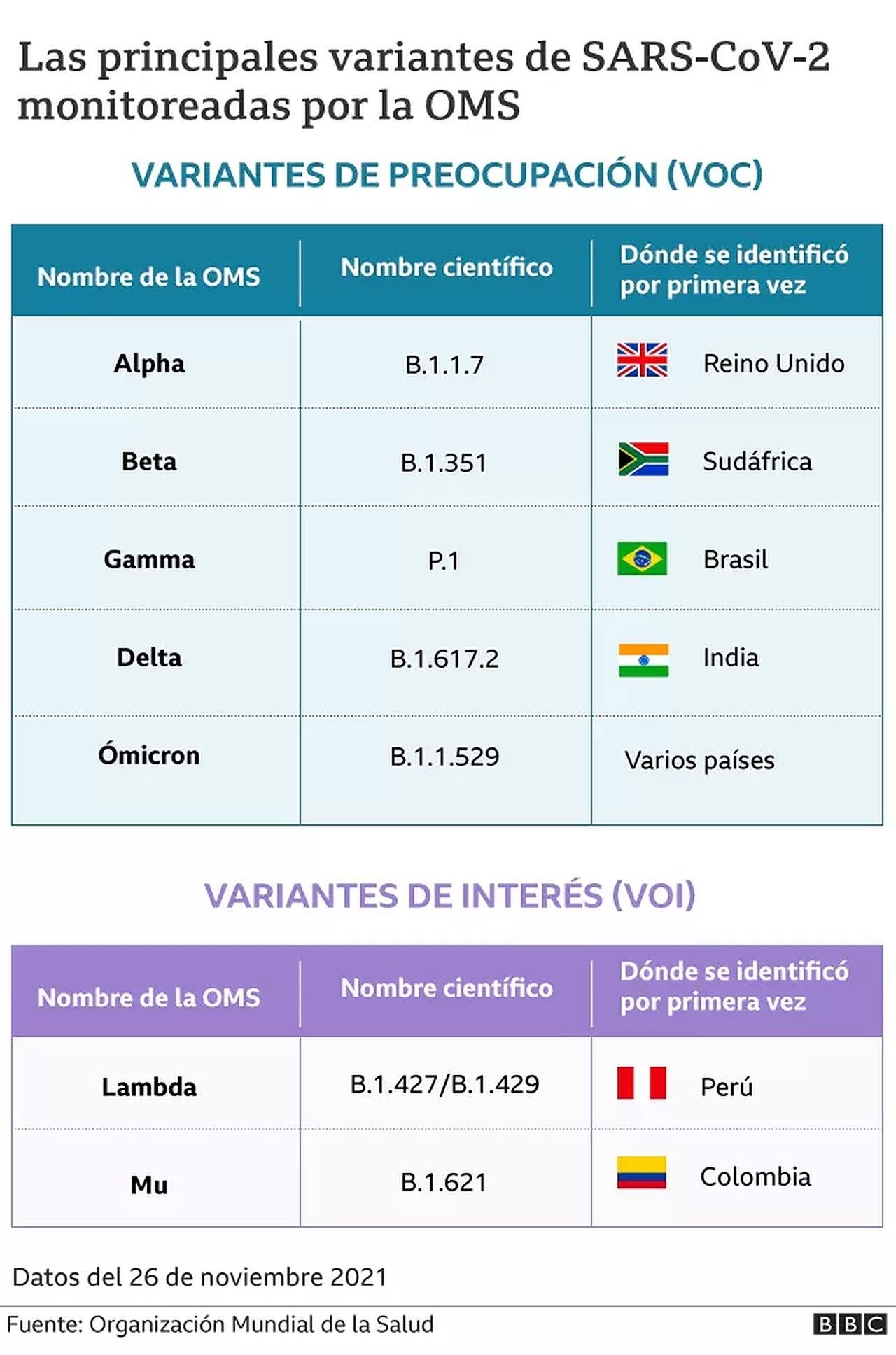 Ómicron suena a apocalipsis. La OMS decidió nombrar a las distintas variantes siguiendo el alfabeto griego: alfa: B.1.1.7; beta: B.1.351; gamma: P.1; delta: B.1.617.2; epsilon: B.1.427/B.1.429; zeta: P.2; eta: B.1.525; theta: P.3; lota: B.1.526; kappa: B.1.617.1; lambda: C.37; mu: B.1.621.