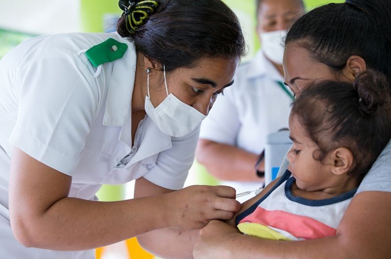 La vacunación contra el sarampión (aquí una imagen de la campaña que se realizó en Samoa en 2019) no solo protege contra esa enfermedad.