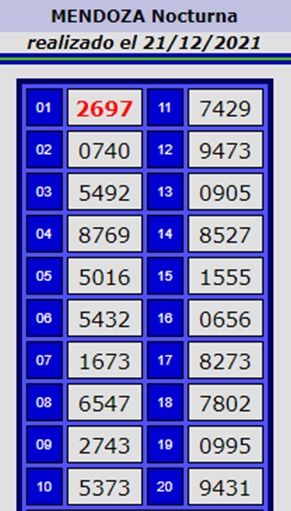 Quiniela de Mendoza – 21 de diciembre de 2021
