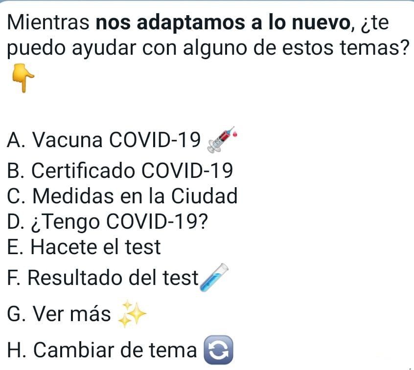 Otra manera de hallar el pase sanitario para los residentes de la Ciudad de Buenos Aires es la de hablarle a Boti, el chat de Whatsapp de la ciudad. Se puede hablar con el bot de la ciudad mandando un mensaje al 11 5050-0147, y con simplemente decirle hola, ya comienza la conversación, en la que se pueden pedir distintas funcionalidades en las relacionadas con el covid además del certificado, como ciertas solicitudes o denuncias.