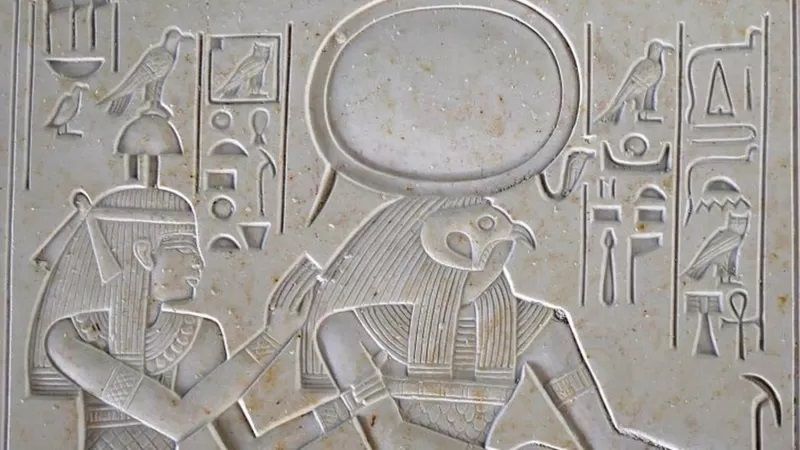 En el antiguo Egipto, la deidad solar Ra se mostraba comúnmente con un disco circular que representaba el sol, aunque este estaba por encima de su cabeza en lugar de detrás.