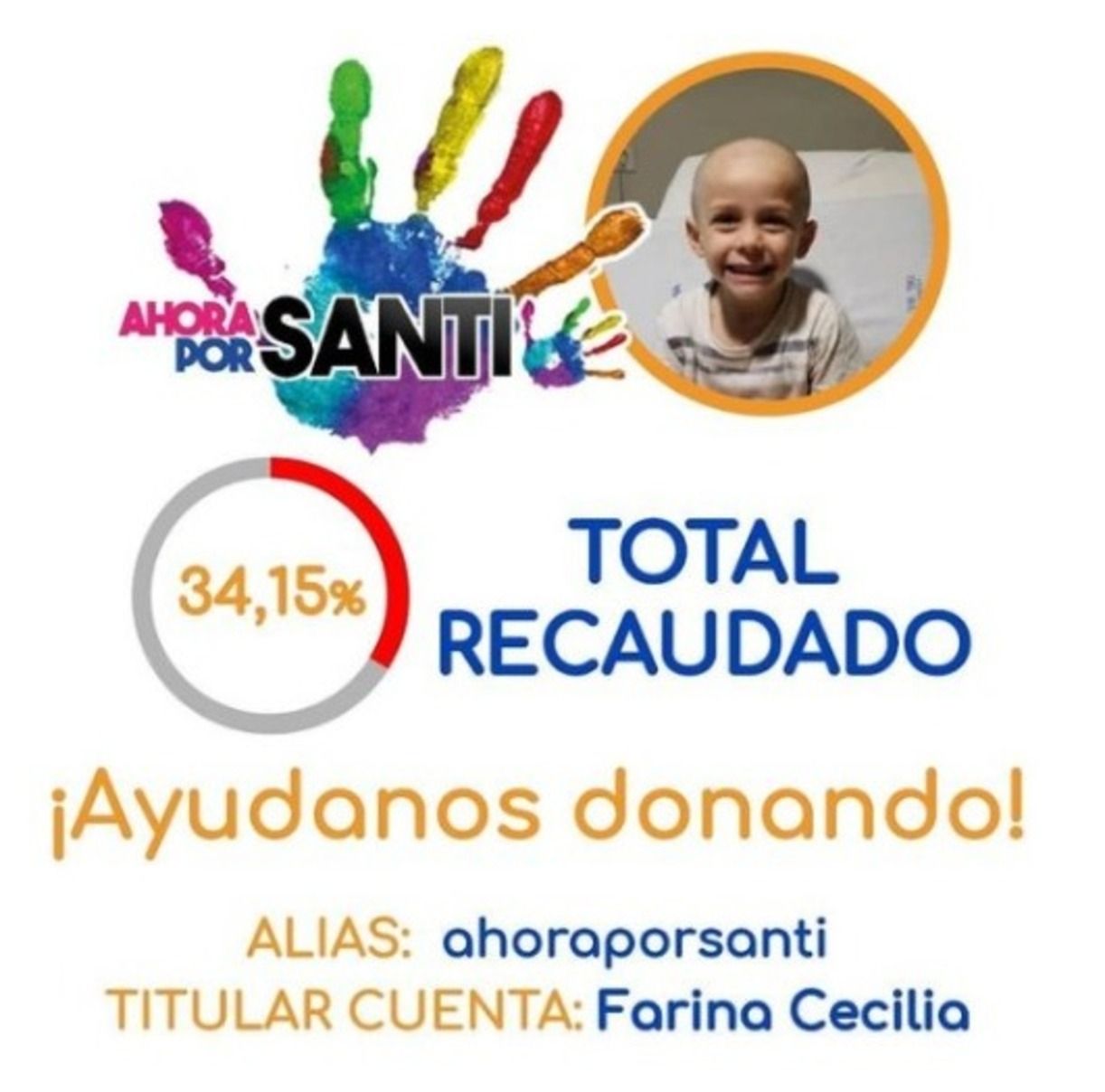 En octubre, Santino Vergara fue diagnosticado con un tipo de cáncer: neuroblastoma en estadio cuatro, con metástasis en huesos y médula espinal. Vive con su mamá, su papá y su hermana en la localidad cordobesa de Río Cuarto y necesita viajar a Barcelona para realizarse un tratamiento especial que no se hace en la Argentina, con el fin de mejorar su calidad de vida. Al no contar con los recursos económicos para financiar el viaje, la familia está vendiendo rifas y apelando a la solidaridad de quienes puedan sumarse a la campaña Ahora por Santi.
