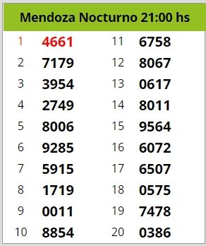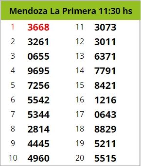 Quiniela de Mendoza - 30 de diciembre de 2021