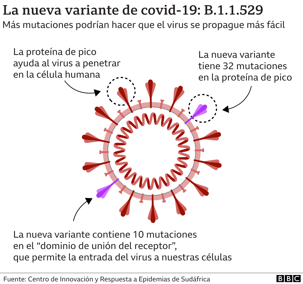 Tiene cerca de 50 mutaciones respecto al virus original, de las cuales 26 son únicas de ella.