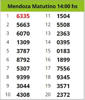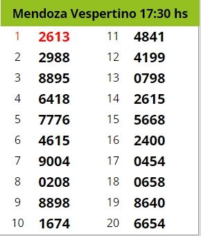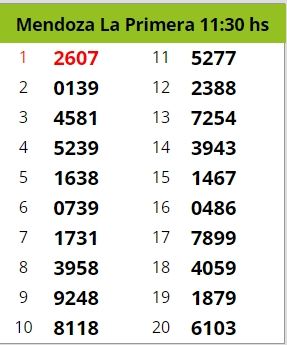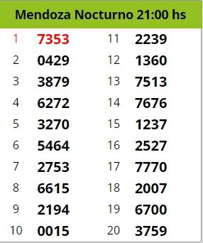 Quiniela de Mendoza - 9 de diciembre de 2021