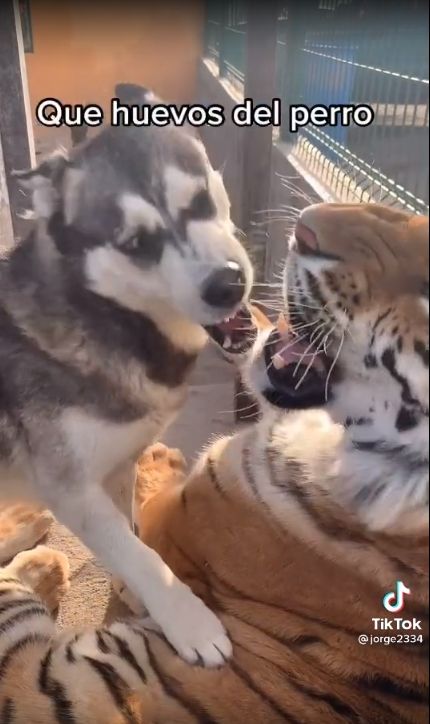 “El Husky y el tigre debieron crecer juntos por eso juegan juntos”, “El Husky: we vamo a juga- el tigre: tate kieto” y “El perro quiere jugar no lo está peleando” fueron algunos de los miles de comentarios que recibió el video viral, donde la mayoría de los usuarios coincidían en la posible amistad previa entre ambos animales.