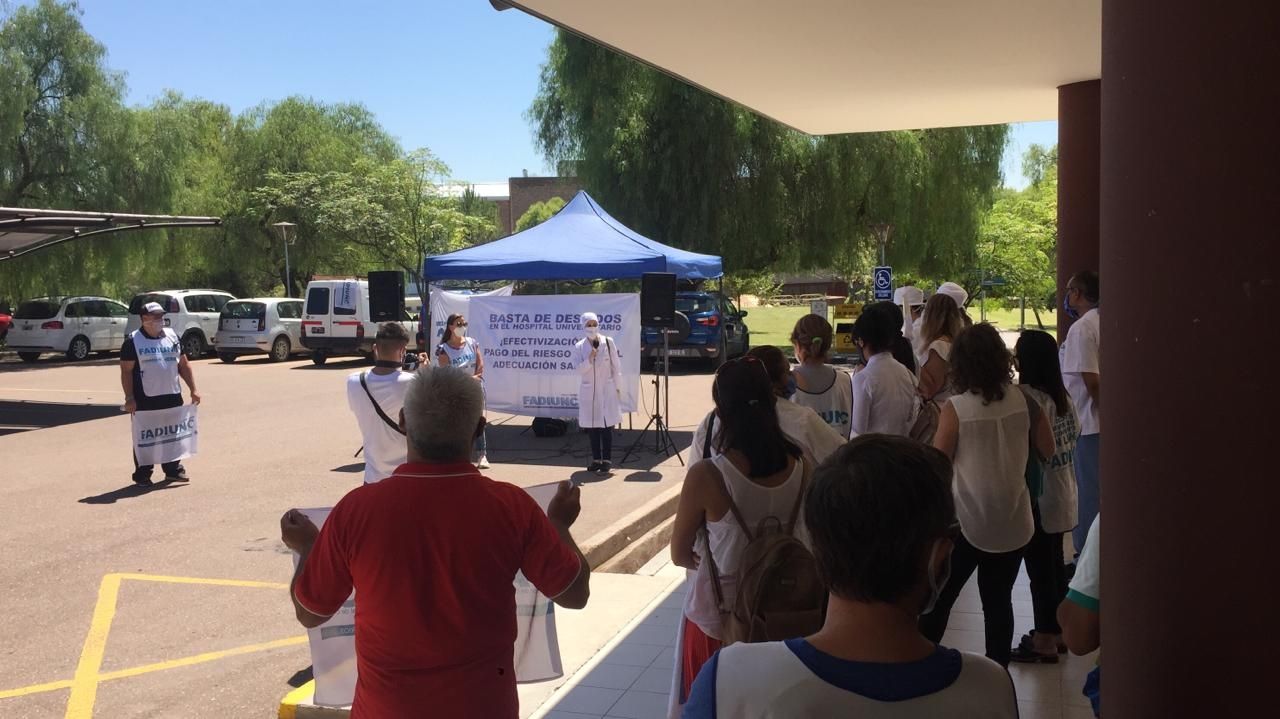 El personal del Hospital Universitario se manifestó ante las autoridades en el rectorado de la UNCuyo