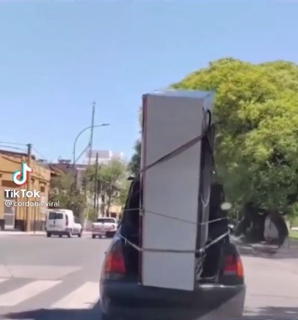 El viral video de TikTok recibió velozmente más de 9 mil likes por parte de sus followers. Esta no es la primera vez que en la cuenta cordobesa aparece un video de un automóvil de porte chico cargando algún objeto de gran tamaño. “Así es Córdoba, lleva la heladera en el baúl” inicia el video comentando el otro conductor que decidió filmar la curiosa situación.