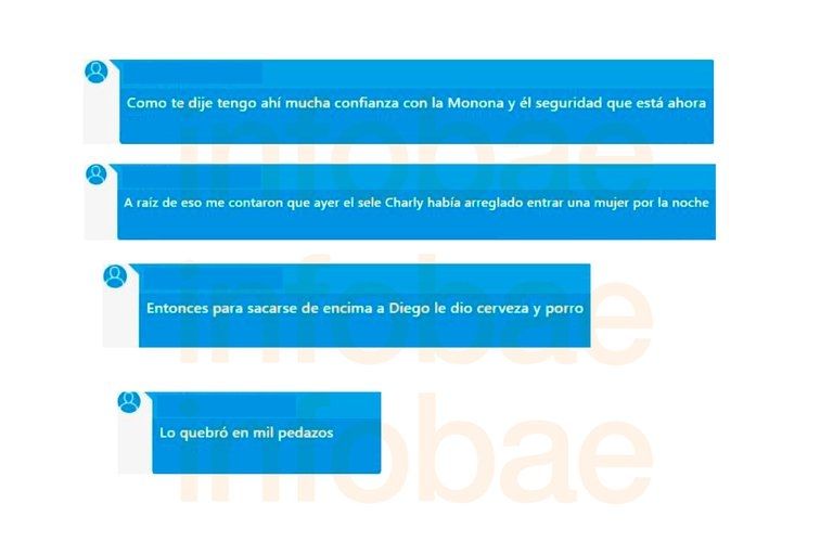 "Yo encontré restos de marihuana picada por todos lados y olor en la casa. El tipo cogiendo en la pieza de servicio y Monona con el de seguridad viendo que Diego no se levante, no durmieron nada. Ellos no querían dormir por si se armaba lío", completaba el audio.