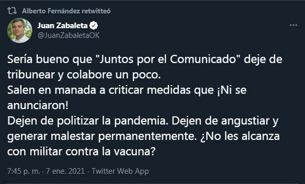 Otro de los puntos que se han dejado ver, han sido mensajes de enojo y confrontativos, sobre todo en las redes sociales, algo que los especialistas en la comunicación política no recomiendan. "En un clima pandémico, es sumamente importante que el Presidente adquiera cierta institucionalidad discursiva en los modos y la calidad argumental para hablar en contra de algo o alguien", dijo Riorda. "La grieta no deja de ser una forma de confort que garantiza aplausos muy rápidos pero también condiciona con techos muy rápidos", comentó.
