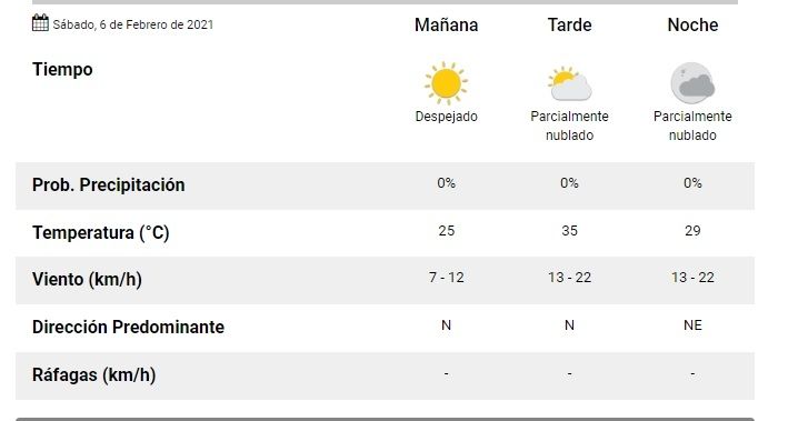 En detalle, la madrugada del sábado comenzará con cielo despejado y una temperatura mínima de 18 ºC, mientras que por la tarde se espera una máxima de 35°C.