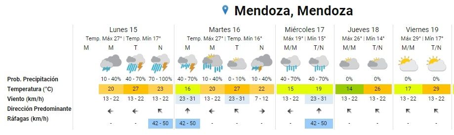 Desde el SMN pronostican que la inestabilidad continuará hasta el miércoles, día en el que además habrá un brusco descenso de la temperatura, ya que la máxima será sólo de 19º.
