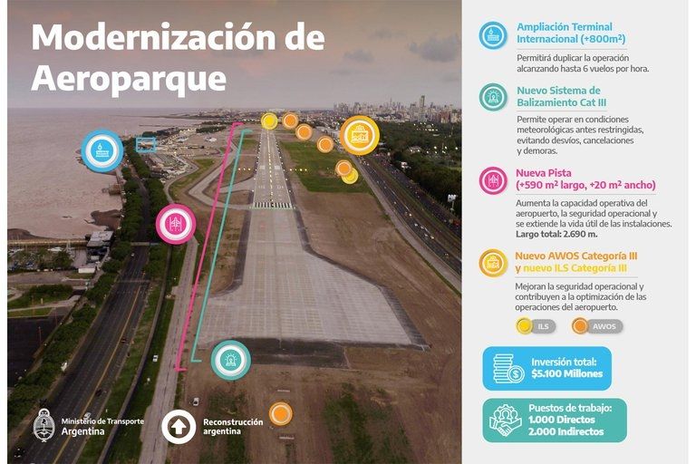 En este sentido, las obras de modernización de Aeroparque, llevadas adelante por el Ministerio de Transporte de la Nación como parte del Plan de Modernización del Transporte Aéreo, abarcaron la construcción de una nueva pista que incrementa los márgenes de seguridad y permite la operatividad de vuelos de mayor alcance.