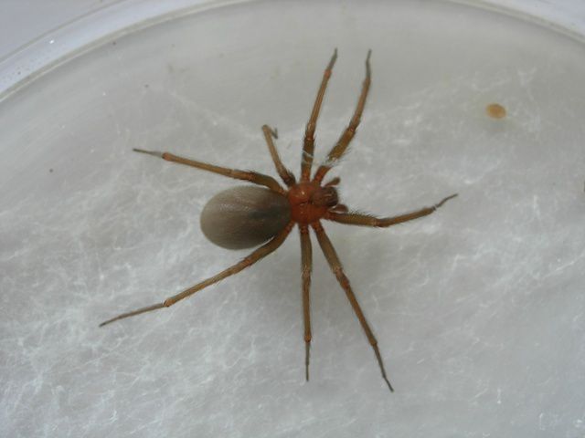 Con patas mide 18-30 mm y sin patas 8-15 mm. Tiene el tórax de color caramelo, con una mancha en forma de violín con el mango hacia atrás. El abdomen es gris claro a pardo. Es domiciliaria, se encuentra en depósitos y sitios de poco movimiento. Es nocturna, solitaria, sedentaria y no agresiva. Su veneno produce lesiones cutáneas muy dolorosas, con formación de placas de color negro y ampollas de contenido sanguíneo, que evolucionan a úlceras de lenta recuperación (1 a 3 meses). Ocasionalmente, entre las 24 y 72 horas después de la picadura, puede provocar cuadros de insuficiencia renal muy grave con riesgo de muerte. Se trata con suero específico y tratamiento local.