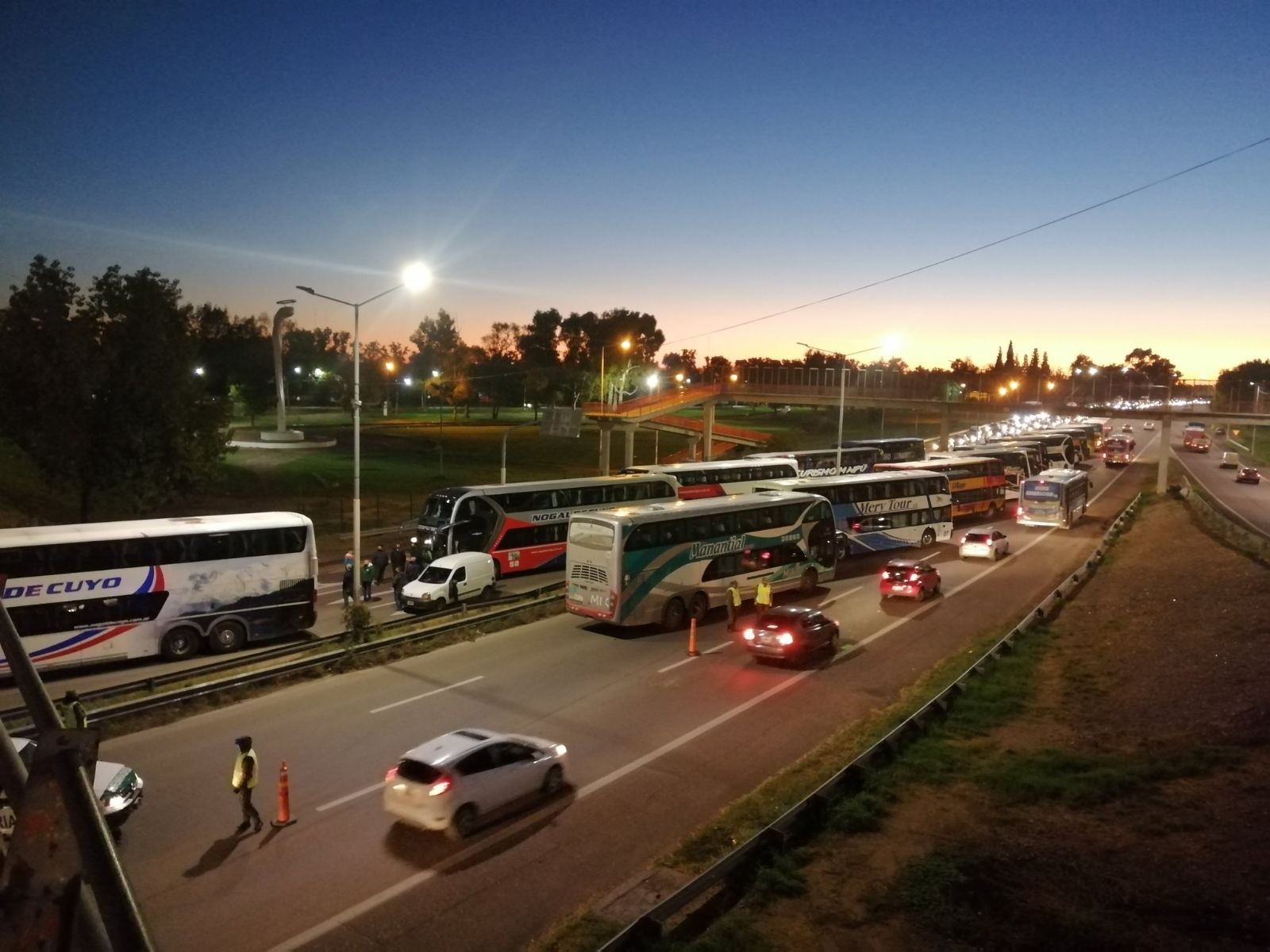 Una protesta de las agencias de turismo provocó el corte casi total y gran caos en el tránsito del Acceso Este, principalmente en el carril con dirección a la Ciudad. La medida de fuerza responde a que con la vigencia del nuevo decreto las empresas de turismo no pueden trabajar, según la palabra de los representantes del sector que atravesaron unos 30 colectivos a la altura del Predio de la Virgen en Guaymallén.