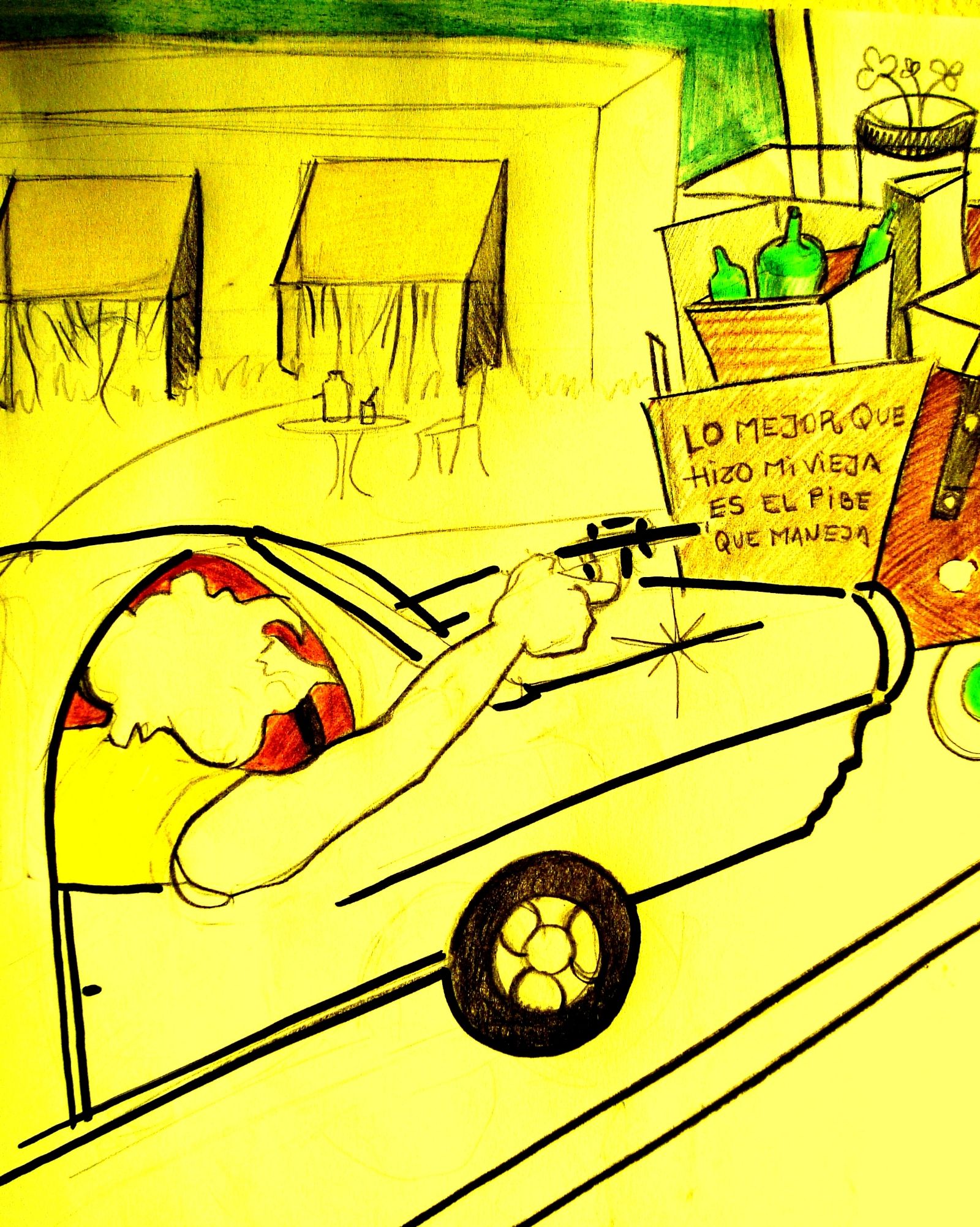 Morrongo, el impasible, iba adelante y con el viejo Chevy. Los otros dos en los cero kilómetro que robaron del camión. Habían acordado que se separarían en el primer cruce, para despistar. Había que vender lo afanado esa misma tarde en el desarmadero de cualquiera de los "muchachos conocidos".