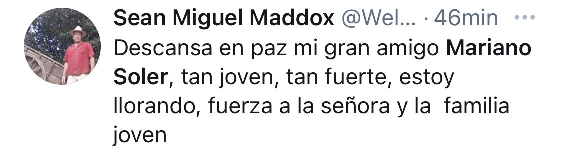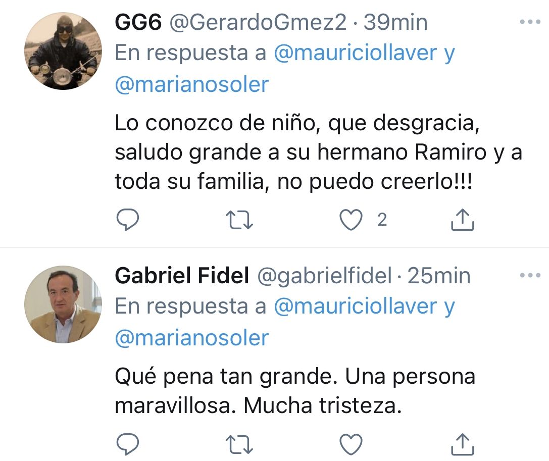 Sociable, buen amigo y conocido por tender la mano a quien estaba a su alcance, fue Twitter la red social elegida por decenas de personas para manifestar la sorpresa y el dolor por su fallecimiento, algunos de ellos fueron los siguientes: