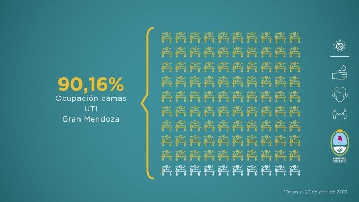 Además, respecto a la ocupación de camas UTI, en el Gran Mendoza, ya se supera el 90% (90,16), mientras que en toda la provincia es del 88%, porcentajes muy similares a la semana anterior.