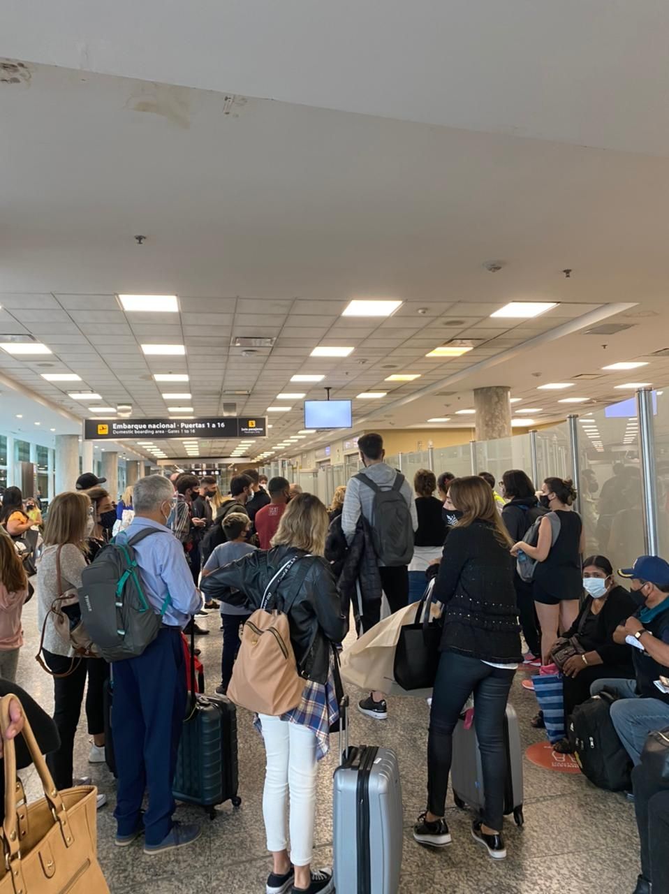 En virtud de esta protesta -que afectaba sólo a Aerolíneas- el vuelo partía a las 9:59 desde Aeroparque a nuestra ciudad está demorado. Las quejas se multiplican, ya que hay personas que desde hace horas quieren abordar sus vuelos en medio de la furia generalizada.