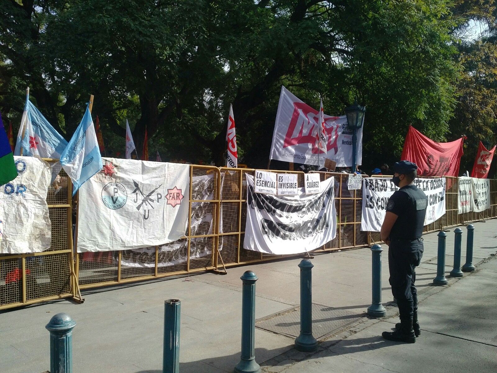Agrupaciones y partidos de izquierda, como el Polo Obrero, gremios como ATE, se hicieron presentes y se concentraron en la Plaza Independencia. La Legislatura estaba vallada por completo, por lo que no pudieron acercarse más.