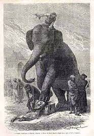 Método utilizado especialmente en el sur y sudeste de Asia. Estos animales eran muy utilizados para aplastar la cabeza y/o el torso de los criminales en brutales ceremonias de ejecución.