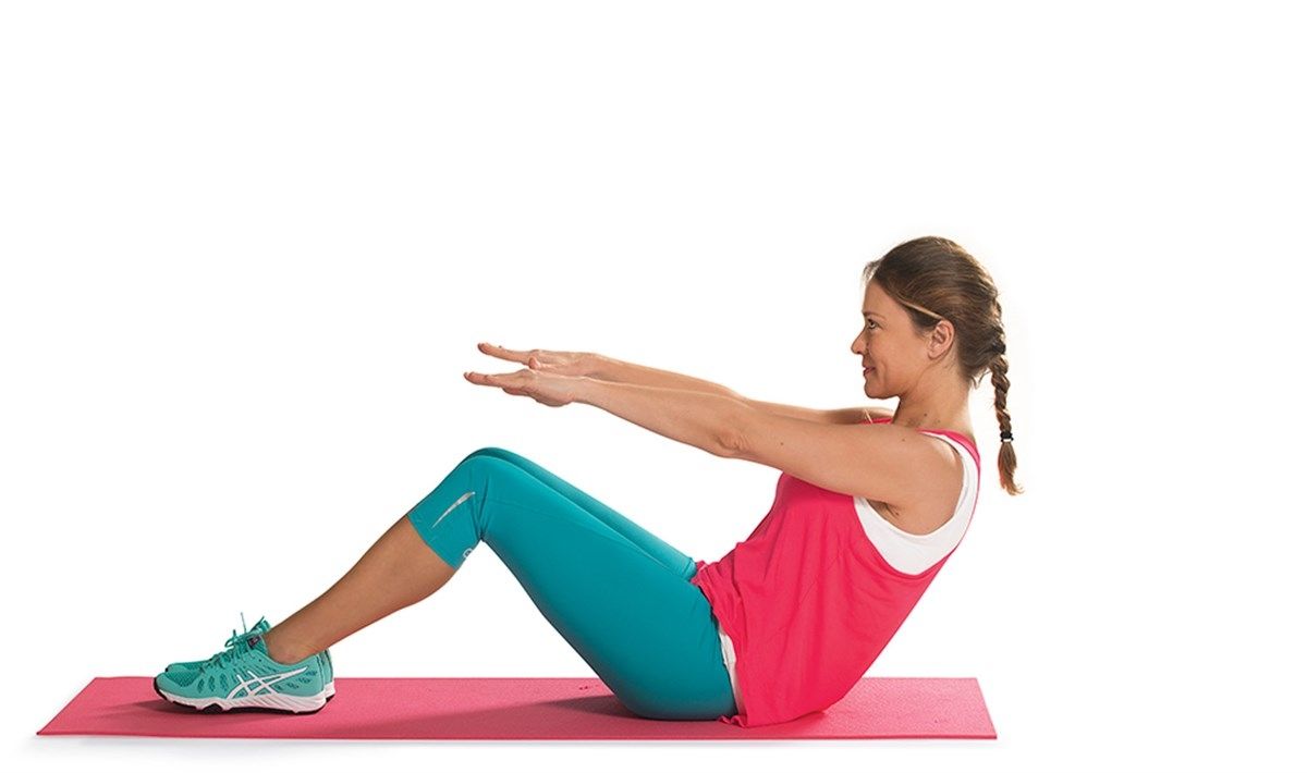 También se puede comenzar más arriba, estirar los brazos y buscar la fuerza del abdomen en un punto más alto, con la espalda elevada y recta, con los miembros superiores hacia adelante.