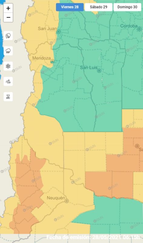 El Servicio Meteorológico Nacional renovó el alerta por Zonda que rige para parte de Mendoza. Si bien ayer el nivel fue de alerta rojo, hoy es de amarillo, y afecta a una zona mucho más acotada de la provincia.