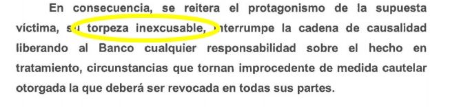 Muy conciliatoria no fue. Antonio destaca que el representante legal del Banco Nación participó de ese encuentro mediante un escrito donde se refería a la "torpeza inexcusable" (sic) del afectado.