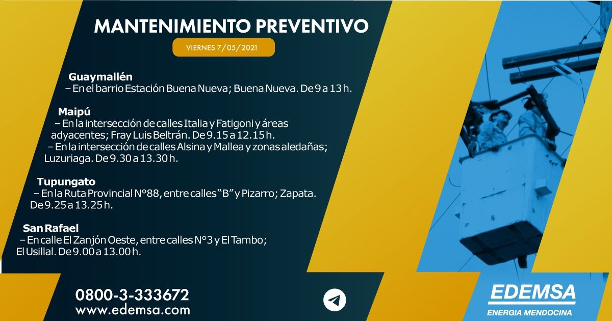 Hoy habrá afectación del servicio eléctrico en las siguientes zonas y horarios. Estas tareas de Edemsa se realizan bajo los protocolos sanitarios establecidos por el covid-19.