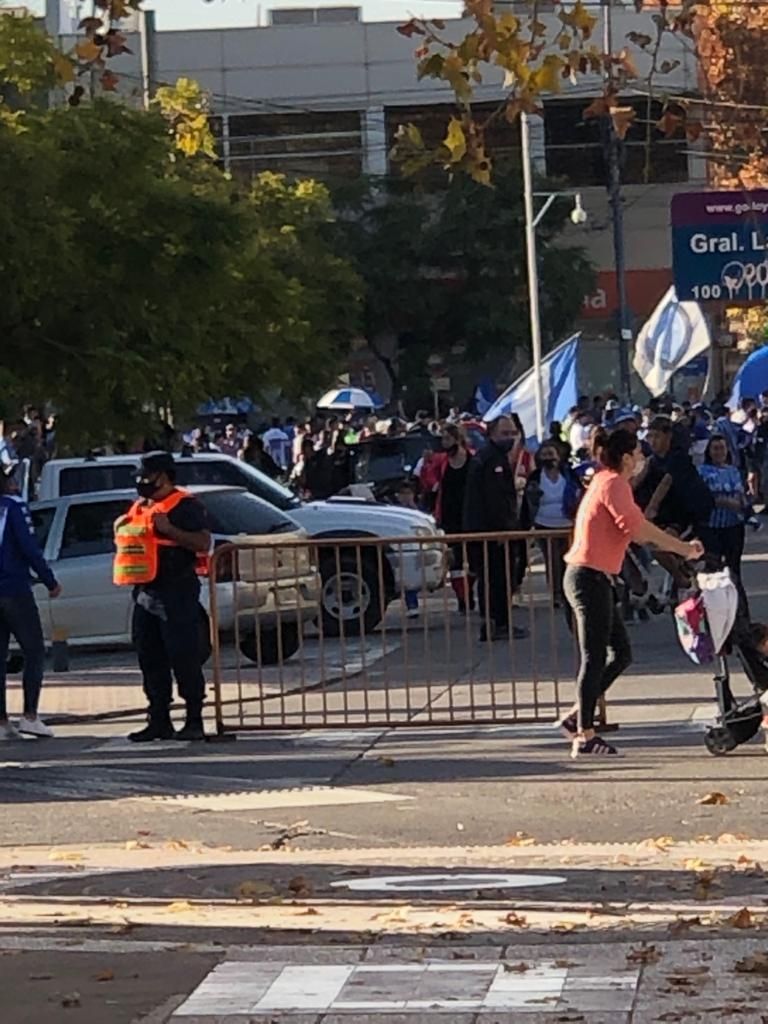 Al promediar la tarde, un fuerte operativo policial se montó para controlar a las caravanas que llegaban a la plaza, que se encuentra vallada. El fiscal correccional de turno ordenó a los efectivos que hicieran "prevención" para que no se produjeran festejos.
