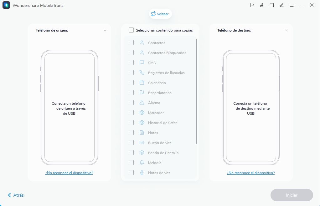 Utilizar wondershare mobiletrans para traspasar los contactos