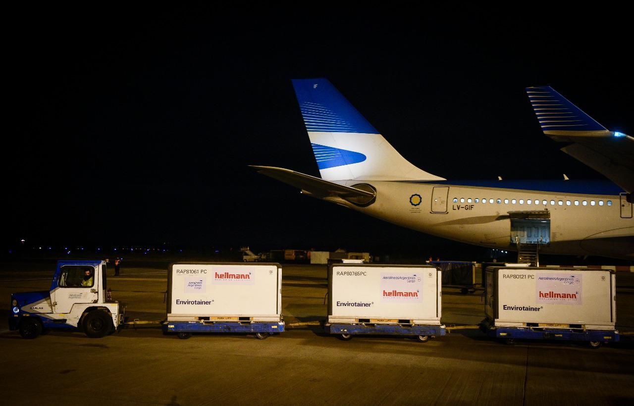 Aerolíneas Argentinas lleva realizados 19 vuelos a Moscú en los que se transportaron 9.473.290 dosis de la vacuna producida por el Instituto Gamaleya. Además, desde Beijing, llegaron al país un total de 5.195.200 en 7 vuelos.
