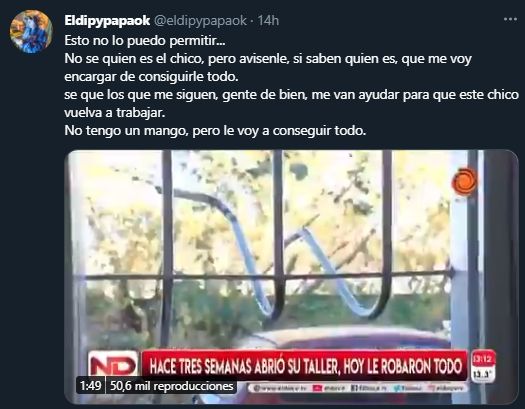 El testimonio del joven cordobés se había viralizado ayer en redes sociales luego de dar una entrevista al canal El Doce. Omar contó entre lágrimas que había pedido plata prestada y que había trabajado durante años para poder abrir su propio taller mecánico.