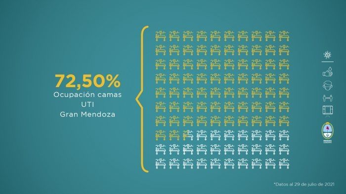 En cuanto al factor ocupacional de camas UTI, el Gran Mendoza es del 72,50%, mientras que la semana pasada fue de 72,02%.