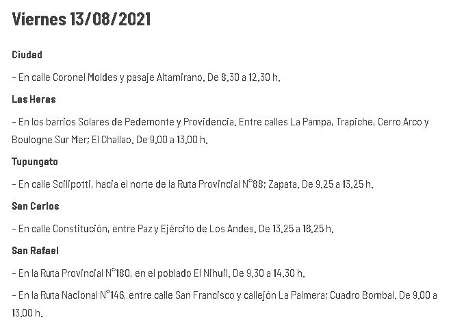 La Institución ha informado el cronograma de cortes de energía que pondrá en acción hoy, viernes 13 de agosto, en su cuenta oficial de Twitter. Las interrupciones se producirán, en este caso, en cinco departamentos mendocinos: Ciudad, Las Heras, Tupungato, San Carlos y San Rafael, y serán para realizar mantenimiento preventivo.
