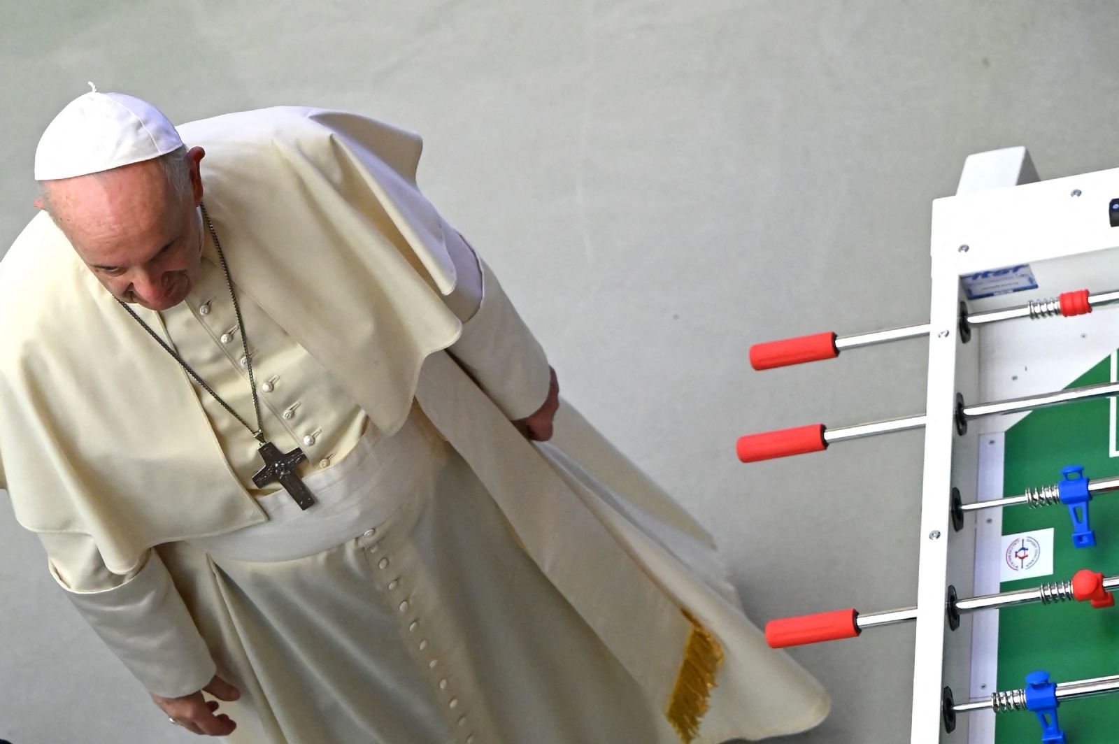El papa Francisco mostró hoy su costado "futbolero" y jugó un rato al metegol durante la Audiencia General que encabezó en el Vaticano.