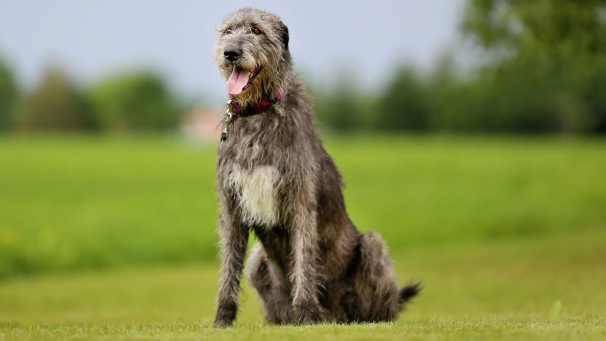 Esta raza también es denominada Lebrel irlandés o Cazador de lobos irlandés. Al igual que el San Bernardo, pueden medir entre 70 y 90 cm de altura, aunque su peso es considerablemente menor: unos 54 kilos, aproximadamente.