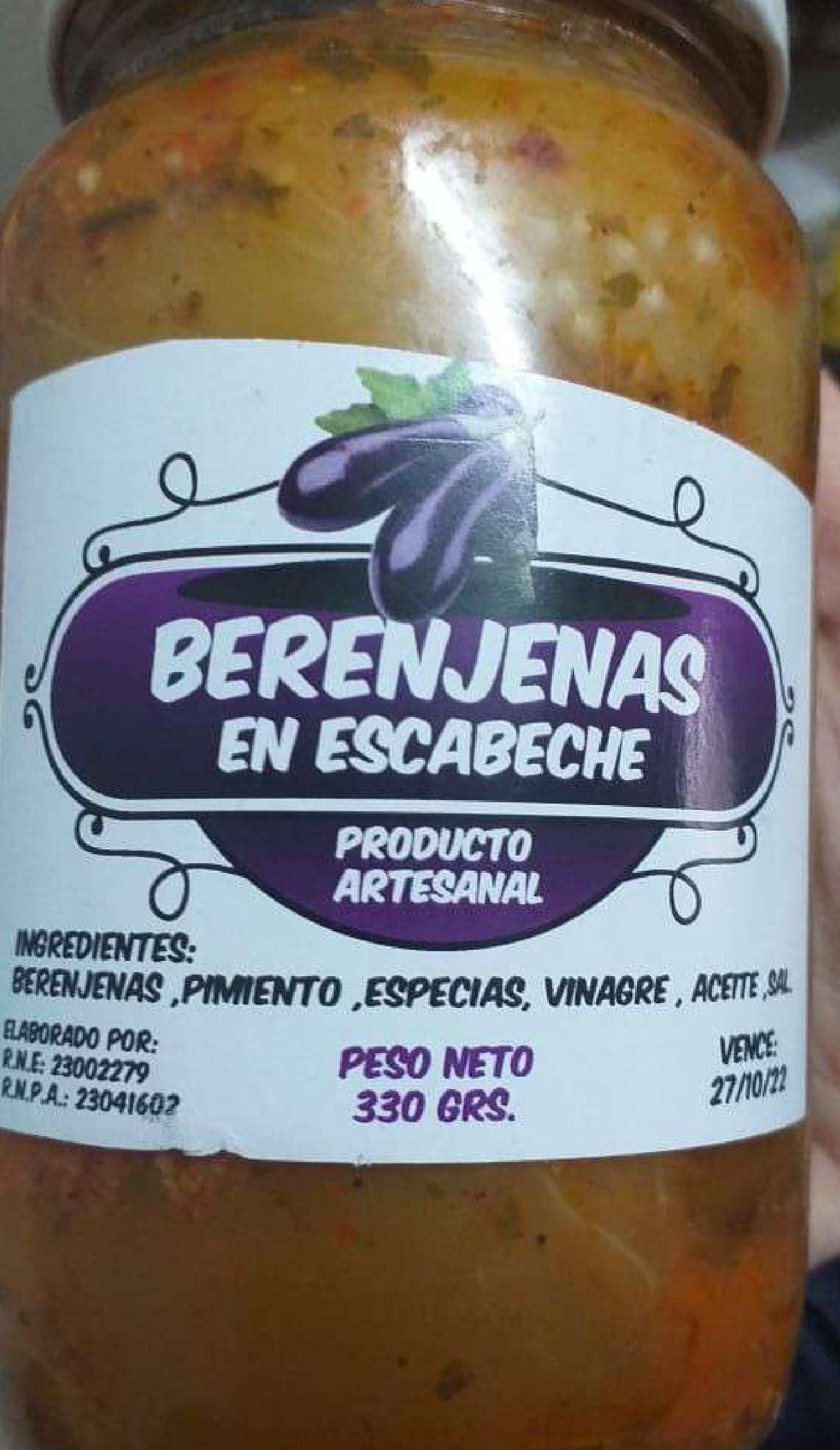 Se trata de los productos denominados "Berenjenas en escabeche, Producto Artesanal" y "Porotos en escabeche, Producto Artesanal", ambos supuestamente elaborados en un establecimiento identificado con RNE 23002279, que se encuentra registrado en la provincia de Tucumán, y registrados con los RNPA 23041602 y 23041652, respectivamente.