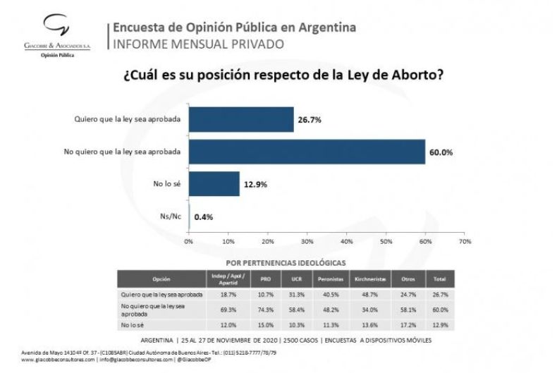 Es que cada vez es más difícil ocultar el rechazo social que produce ver que, entre otras incoherencias que han salido a la luz estos días, mientras el presidente Alberto Fernández decía que quería combatir la cultura del descarte -citando al Papa Francisco- estuvo gran parte del 2020 operando y trabajando para conseguir los votos de la ley del descarte selectivo de personas. Eso mismo es lo que reflejan las encuestas, como la que Giacobbe & Asociados realizó a nivel nacional y dio a conocer los primeros días del pasado diciembre en la que se reflejó que el 60% de los argentinos rechazaban la ley del aborto.