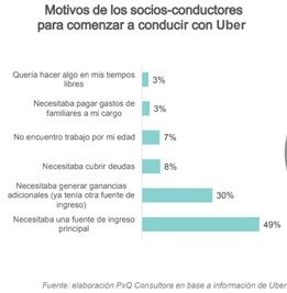 Entre los motivos por los que los conductores decidieron sumarse a la plataforma se destaca que la mitad de los conductores comenzaron a conducir con la aplicación porque necesitaban una fuente de ingreso principal, mientras que un 30% tenían ingresos pero necesitaban ganancias adicionales.