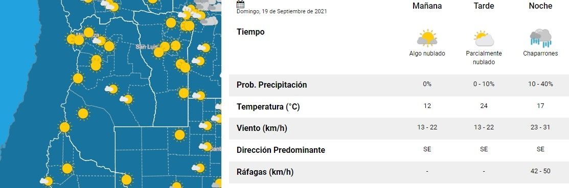 A solo horas de la llegada de la primavera, el tiempo en Mendoza será bueno por la mañana, pero en la noche podrían registrarse chaparrones en diferentes zonas del Gran Mendoza. Así lo informó el Servicio Meteorológico Nacional (SMN).