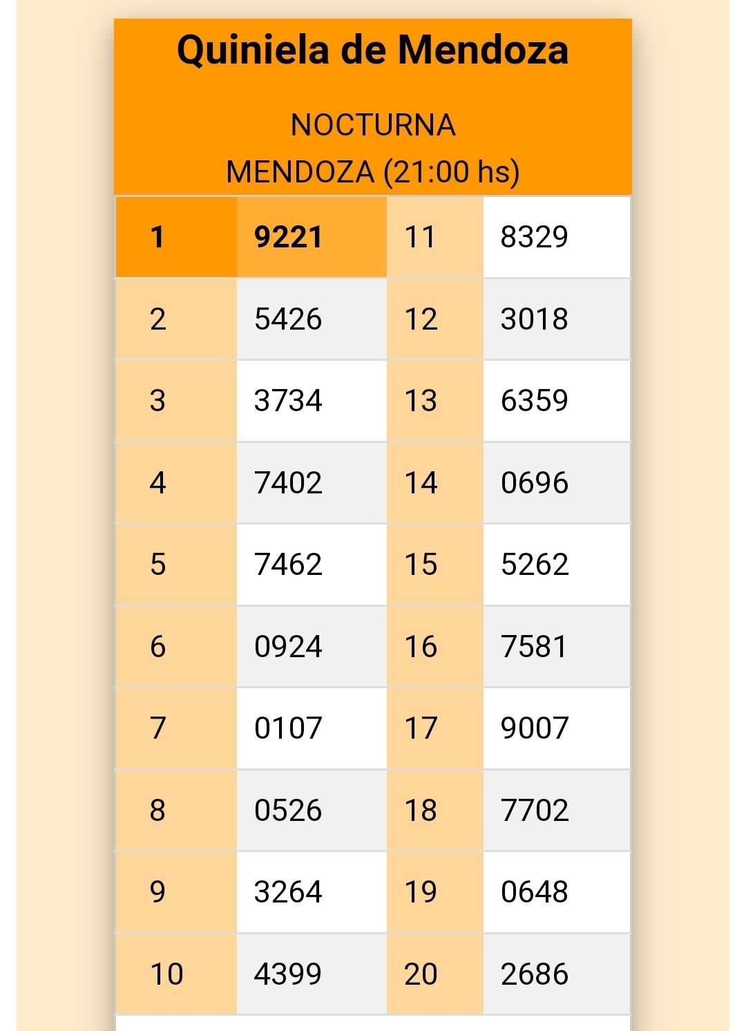Quiniela de Mendoza – 28 de septiembre de 2021
