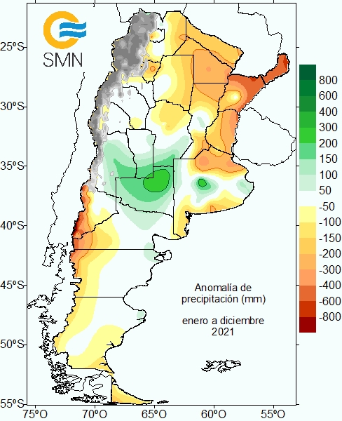También la región del Litoral y el norte de la provincia de Buenos Aires registraron un año deficitario. Si lo comparamos con el 2020, este año presentó un panorama un poco mejor, especialmente hacia el norte y centro-oeste del país donde durante el segundo semestre se registraron importantes precipitaciones.