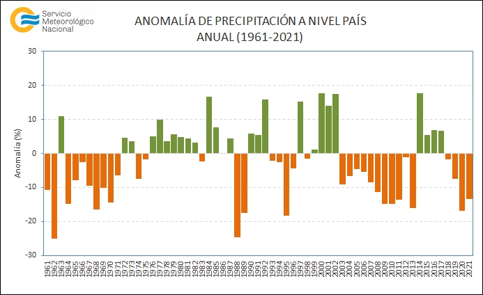 Patagonia registró el año más caluroso y seco desde 1961. El récord anterior de temperatura era de 1998 y el de déficit de lluvia era de 1968. Desde 2007 esta región registra una tendencia a tener años secos.