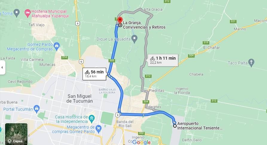 Emprendí la travesía de unos 18 km hasta mi destino, al norte de la ciudad de San Miguel de Tucumán, el aeropuerto queda al Este. Bolso en la espalda estilo Rapi, mochila adelante apoyada en el caño, colgada del manubrio y hecha un rollo la voluminosa funda en la que viajó la bici. Iba cargado pero tenía con buen control...