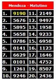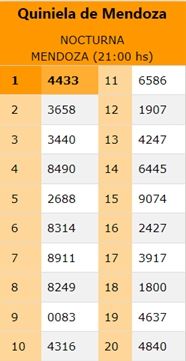 Quiniela de Mendoza – 11 de enero de 2021