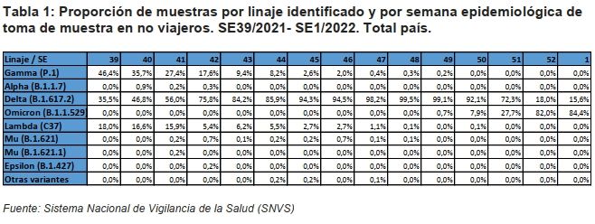 El informe llamado "Situación de nuevas variantes SARS-CoV-2 en Argentina":