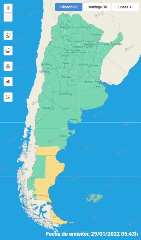 Esta condición se modificará a partir del domingo y también alcanzará la jornada del lunes, mientras que nuevamente el martes muestra probabilidades de inestabilidad.